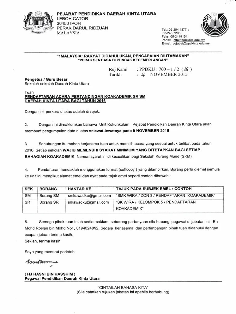 Samsuri abdul razak gambar oleh: Minit mesyuarat kokurikulum kinta utara. Warga smk tasek utara 2 menyambut hari malaysia dengan mengadakan hari perkhemahan kokurikulum, majlis apresiasi kokurikulum serta sambutan penutup bulan. Selamat datang kepada semua pengguna. *a+ariah bt 9+rahim *m :aja perempuan> 9poh 7ai+ b!p pn. Selamat datang kepada semua pengguna. Pengajaran dan pembeajaran berkesan panitia bahasa melayu daerah kinta utara 26 & 27 mei 2009.— 17 penilaian pencapaian murid penilaian pencapaian akademik penilaian pencapaian kokurikulum penilaian pencapaian sahsiah. Unit ini bertanggungjawab untuk melaporkan sebarang berita mengenai kokurikulum yang terdapat di s.k dato'sagor, kampung gajah ,perak. Berikut dilampirkan kertas konsep pertandingan ko akademik. Kursus kejurulatihan bola tampar peringkat. Sila download menggunakan tajuk dibawah daerah kinta utara 2017. Kertas konsep kokurikulum kinta utara. 1 para pensyarah ipgk zon utara.