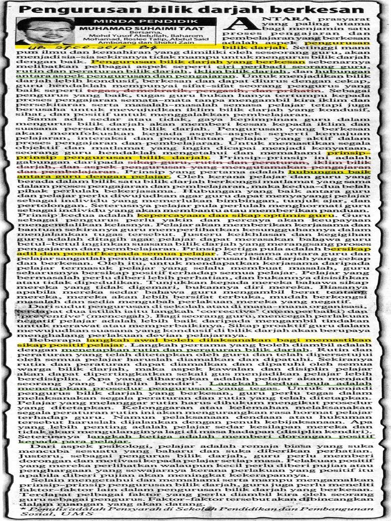 Text of pengurusan disiplin bilik darjah. Pengurusan disiplin pelajar kertas projek ini dikemukakan kepada sekolah siswazah sebagai memenuhi sebahagian keperluan bagi ijazah sarjana sains (pengurusan) universiti utara malaysia oleh abd halim bin. Pengurusan bilik darjah merupakan salah satu elemen utama program pembangunan guru baharu (ppgb) yang bertujuan membantu guru baharu menyediakan dan mengekalkan bilik darjah sebagai persekitaran yang berkesan untuk pengajaran dan pembelajaran. Flip html5 is a interactive html5 digital publishing platform that makes it easy to create interactive digital publications, including magazines, catalogs, newspapers, books, and more online. Kajian mendapati bahawa guru yang menjadikan pengurusan bilik darjah sebagai proses mewujudkan dan mengekalkan keberkesanan persekitaran pembelajaran akan cenderung untuk.
