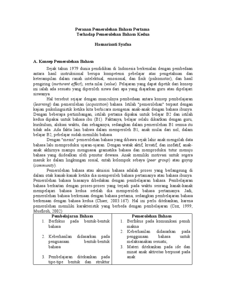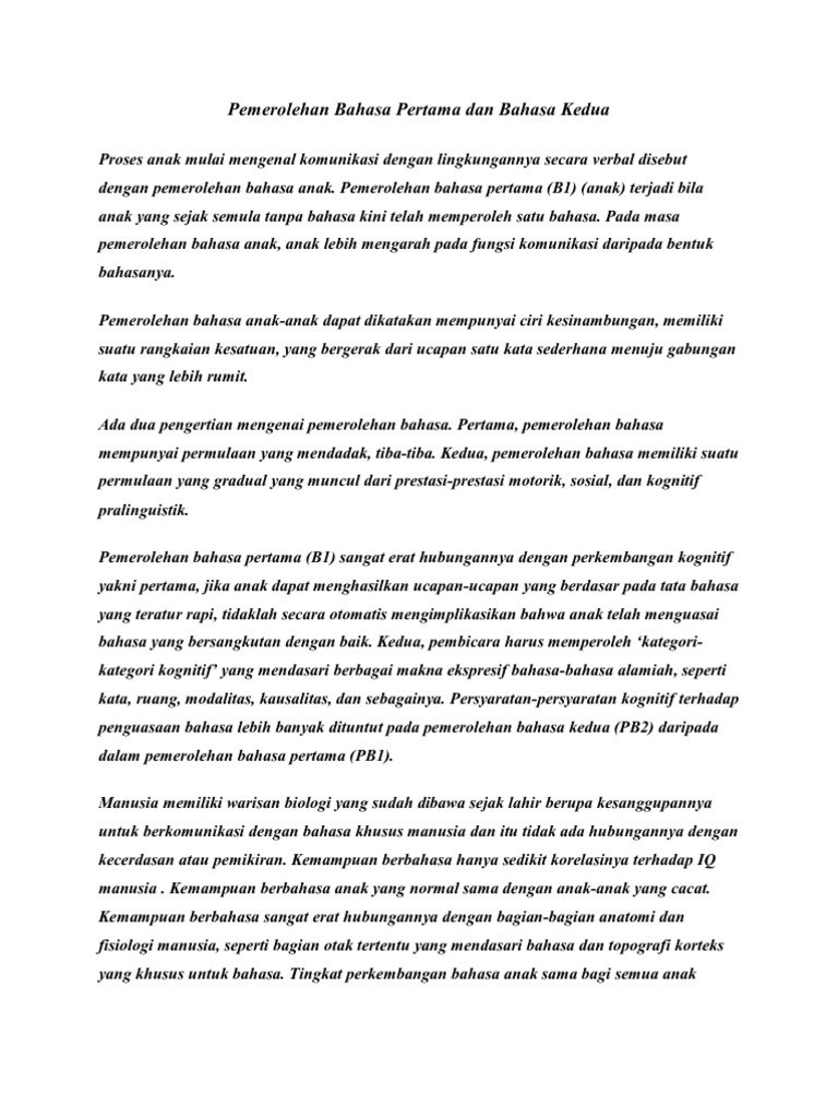 broca penggunaan bahasa secara kreatif yang meliputi pemrosesan seacara sintaktik dan semantik serta pengendali berbicara dan. Ada pakar yang menyebut sebagai pembelajaran bahasa (language learning) dan ada yang menyebutnya sebagai pemerolehan bahasa (language. Pemerolehan bahasa banyak dipengaruhi lingkungan keluarga. Teori pemerolehan bahasa kedua bahasa kedua dapat didefinisikan berdasarkan urutan, yakni bahasa yang diperoleh atau. Hendra setiawan, s.s., m.pd.disusun oleh: