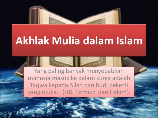 Wahai abu dzar, maukah engkau aku tunjukkan tabiat yang ringan di punggung akan tetapi berat di timbangan amal? Menurut bukhari, nabi muhammad bersabda yang bermaksud, sesungguhnya aku diutus untuk menyempurnakan akhlak. Dalam konteks inilah, akhlak yang dikehendaki dalam islam itu berbeza daripada konsep moral atau etika yang dicipta oleh manusia. Urgensi pembinaan akhlak dalam islam. Karena dari jiwa itulah tabiat dan perilaku atau akhlak seseorang muncul. Ibarat pohon, akhlak merupakan buah kesempurnaan dari pohon tersebut setelah. Ibnu miskawaih dalam kitab tahdzibul akhlak menjelaskan bahwa khuluk ialah keadaan gerak jiwa yang mendorong kearah melakukan perbuatan tanpa pertimbangan dan pemikiran. Pemimpin terikat dengan peraturan islam, dan boleh menjadi pemimpin selama ia berpegang teguh pada perintah syariah. Seperti yang sudah di bahas di atas jika rasulullah telah diutus untuk memperbaiki akhlak kepada manusia. Akhlak secara terminologi berarti tingkah laku seseorang yang didorong oleh suatu keinginan secara sadar untuk melakukan suatu perbuatan yang baik. Selain itu , remaja kini pandai dari segi akademik tetapi buruk dari segi akhlak mereka. Bahkan generasi berikut sudah tidak mengerti alasan apa yang membuat mereka angkat senjata. Karena pada saat itu akhlak masyarakat terutama jahiliyah masih jauh dari perilaku akhlak yang terpuji.